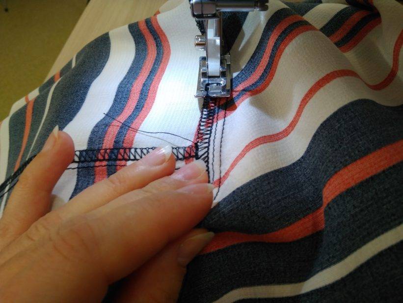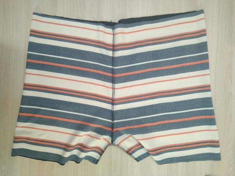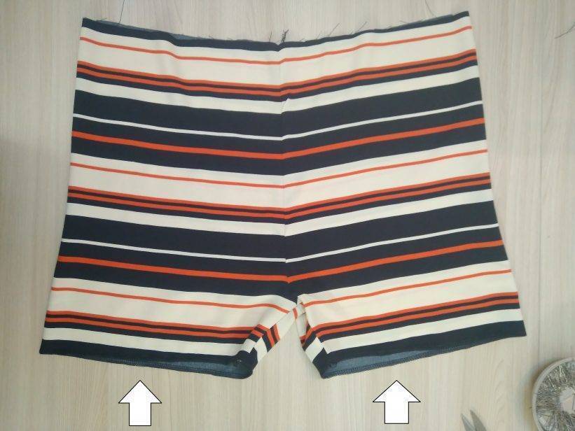 Срез обметываю, заутюживаю вниз по направлению к шортам.