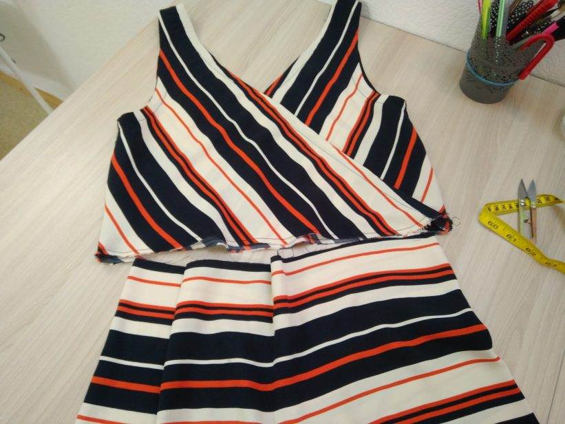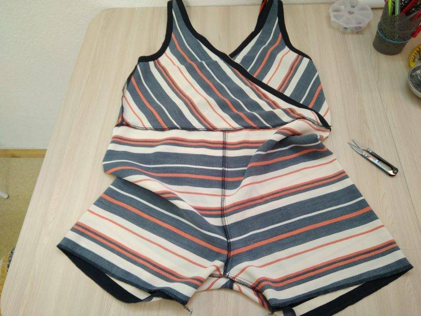 05. Приступаю к пошиву верха комбинезона. Соединяю детали полочки и спинки по боковому срезу.
