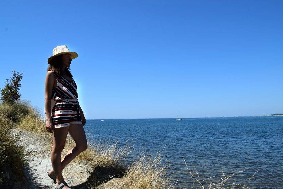 Результатом пошива я осталась довольна. Получилась легкая и универсальная вещь для лета. Еще одним плюсом этой модели можно считать тот факт, что он низ не будет задираться при ветре. Обычно летние вещи из легких тканей с коротким низом, при порыве ветра имеют особенность разлетаться и создавать этим неудобные ситуации. Девочки, сейчас меня поймут) Так же мне, как активной велосипедистке, этот яркий женский летний комбинезон подходит для велопрогулок