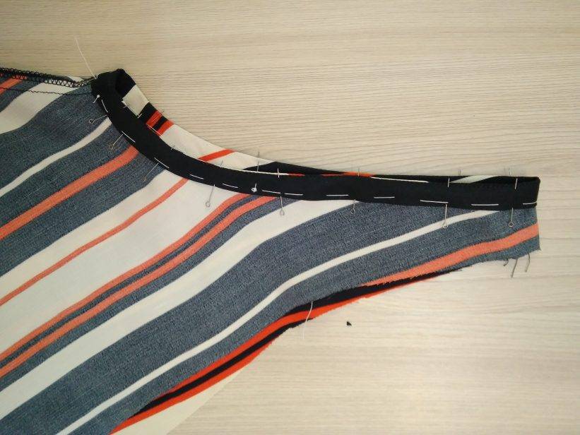 06. Я буду обрабатывать срезы горловины и рукава косой бейкой.