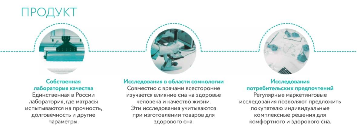 все разработки компании проходят тестирование в собственной лаборатории сна, сертифицированной по стандартам ISO;