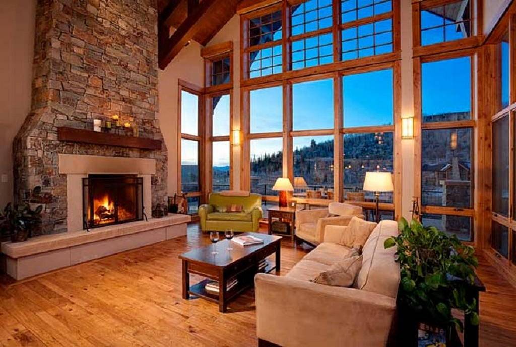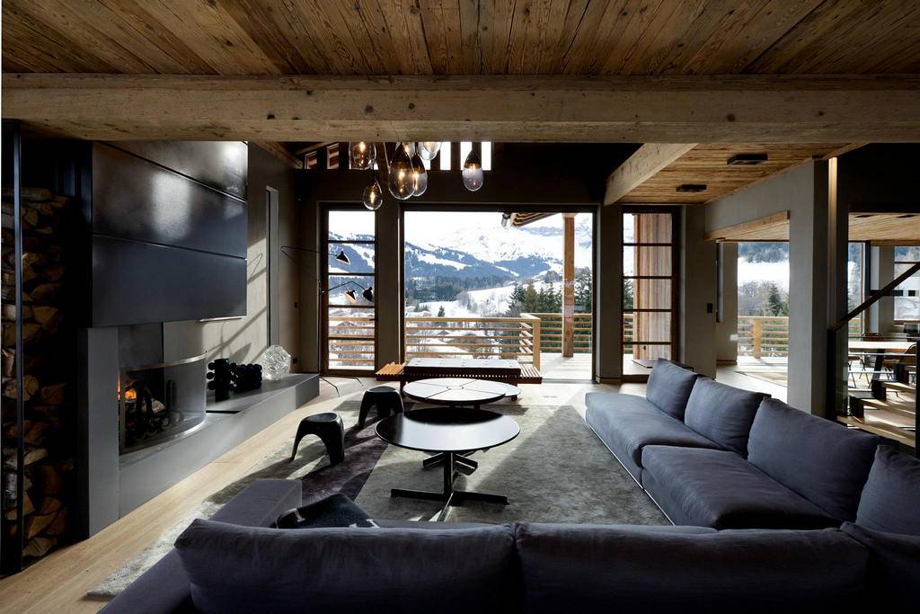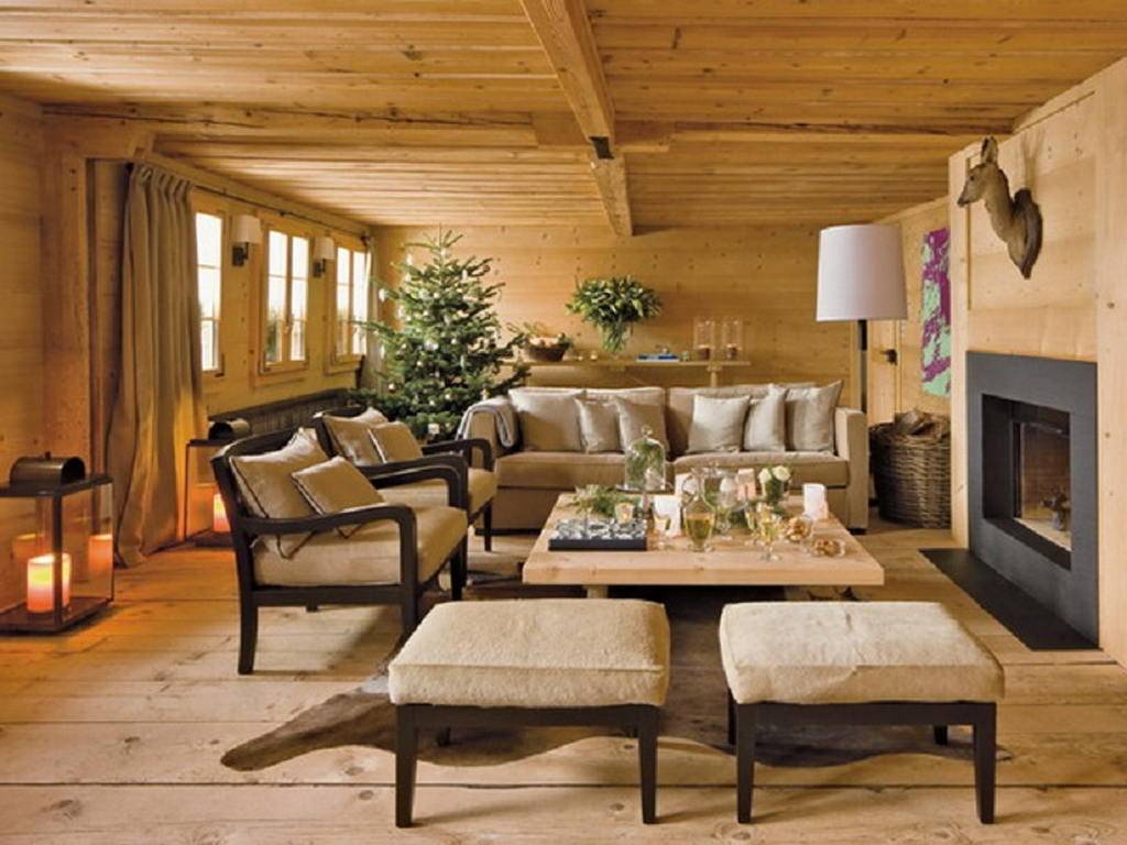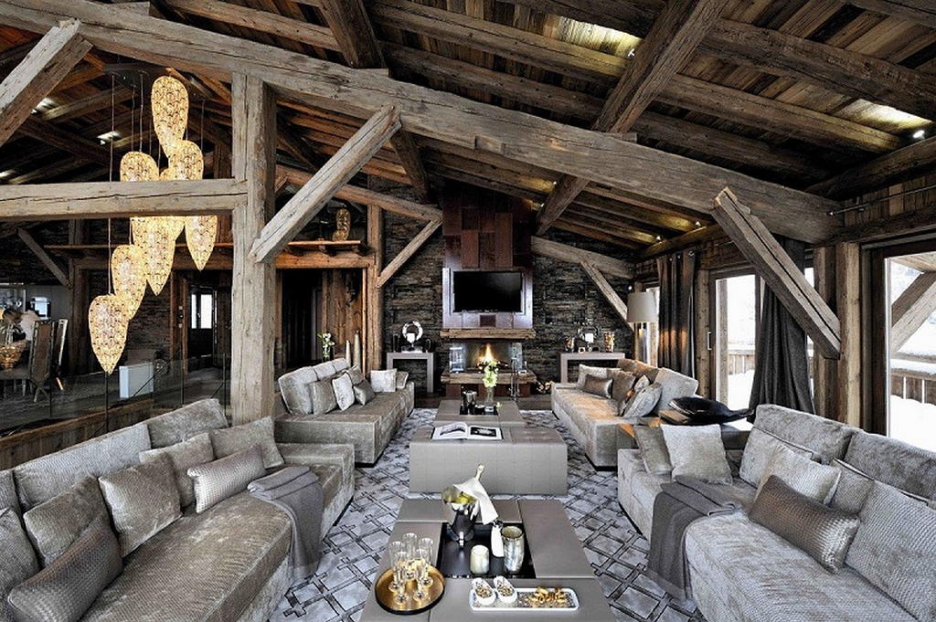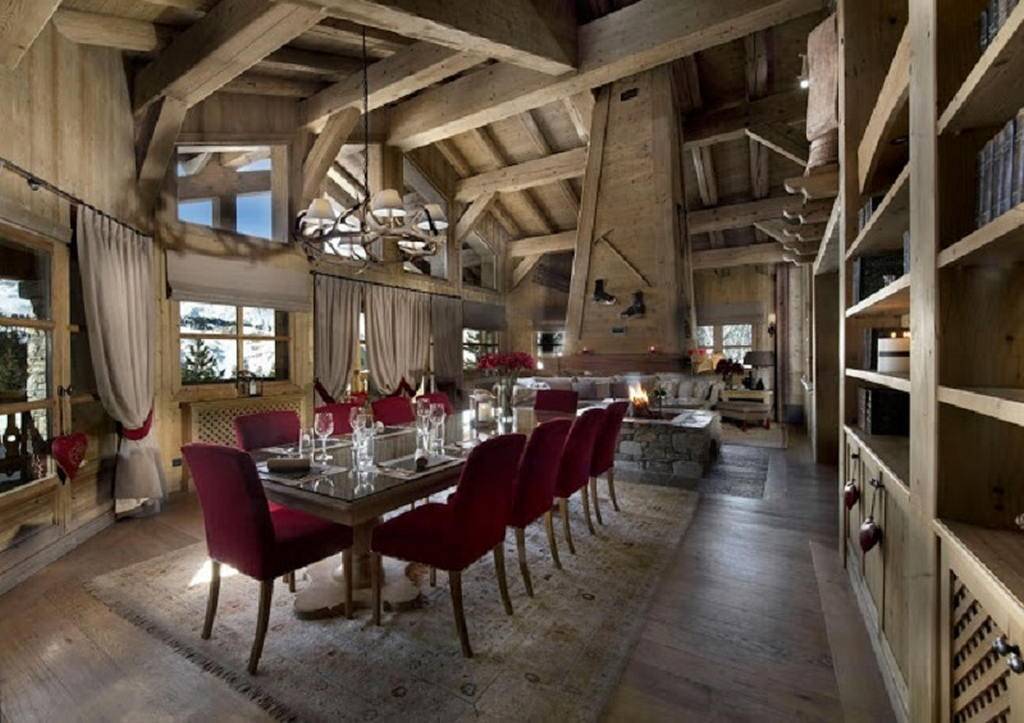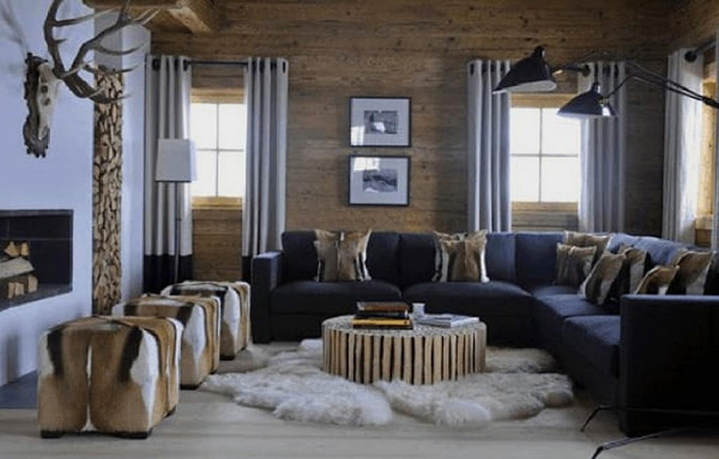 Таким образом, шале характеризуется применением исключительно натуральных материалов в отделке, превалированием дерева, простотой, минимумом обработки, отсутствием вычурности и роскоши, включением предметов ручной работы, использованием в качестве украшений охотничьих орудий и трофеев, большими габаритами мягкой мебели и наличием камина.