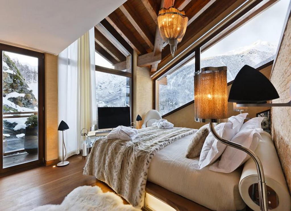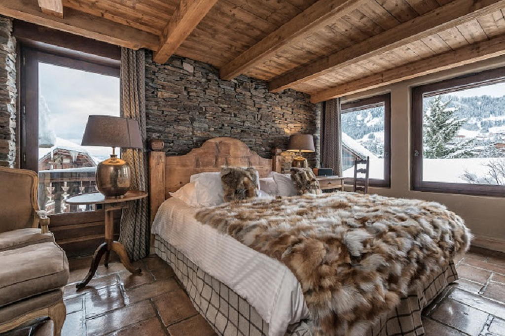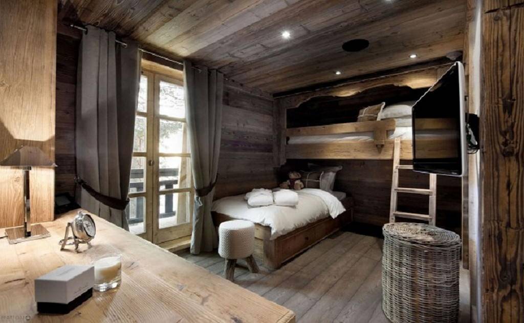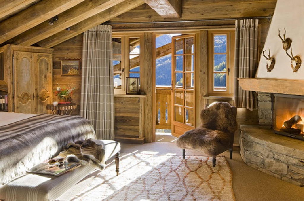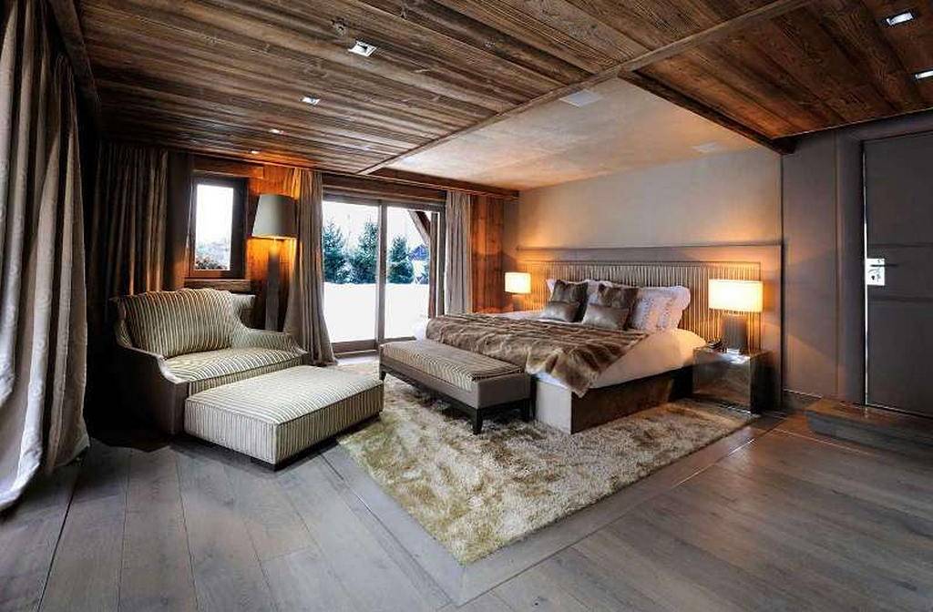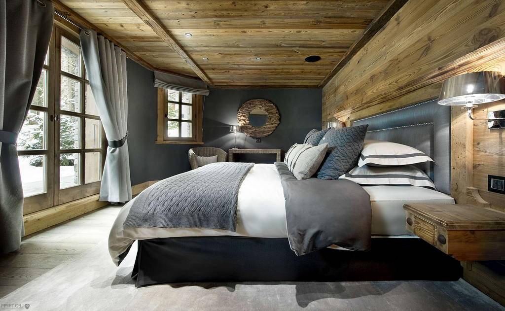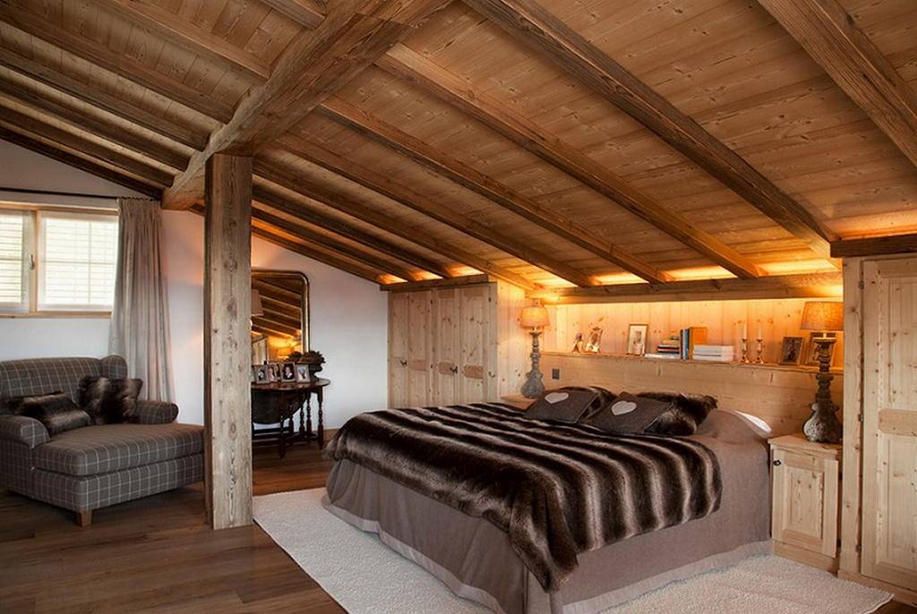 Уютный и натуральный альпийский стиль шале в интерьере спальни