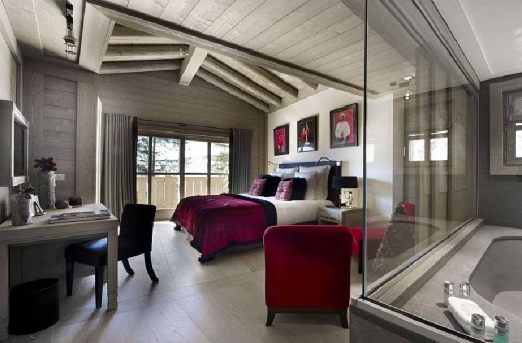 Экологичность и аскетичность стиля шале как нельзя лучше подходят для комнаты отдыха. Дерево дышит и поддерживает здесь благоприятный микроклимат. Ничего не раздражает и не мешает уснуть. Идеальное место для размещения спальни – мансарда с великолепным видом из окна.