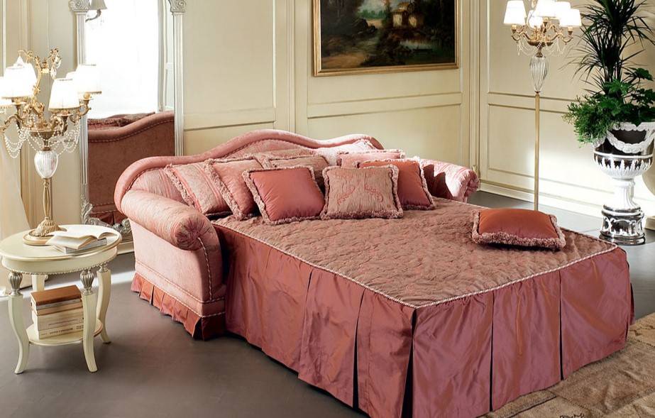 Обшивается мебель также натуральной тканью, придающей изыск интерьеру: