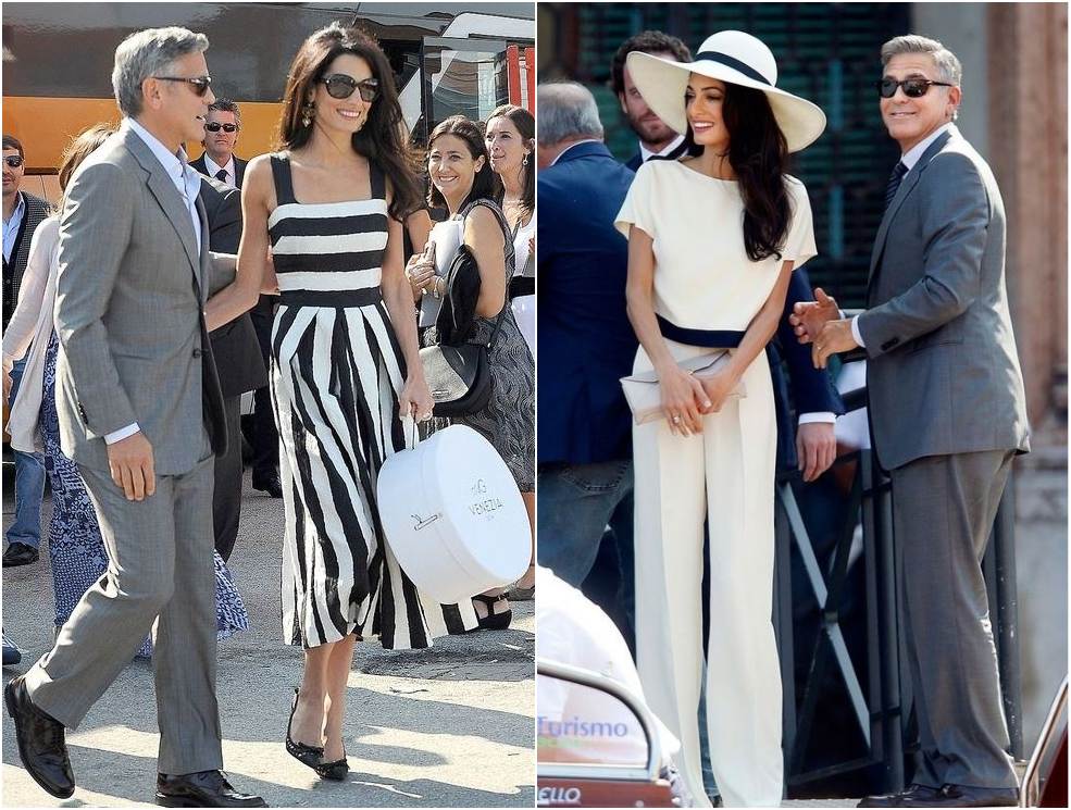 Близкая подруга герцогини Сассекской и жена голливудского актера Амаль Клуни также для своих выходов любит облачаться в наряды курортной моды. Строгие брючные костюмы, прямые лаконичные платья в полоску, длинные сарафаны, дополненные элегантными шляпками и круглой сумкой – основа морского гардероба популярного юриста Амаль.