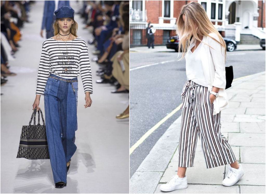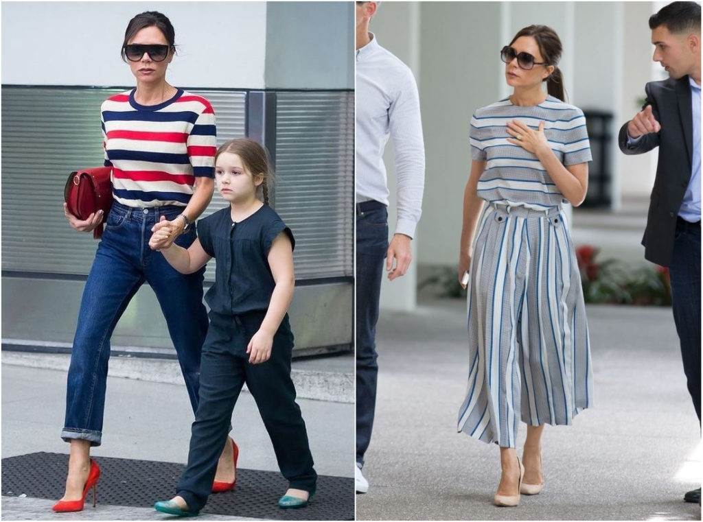 Британская икона стиля Виктория Бекхэм предпочитает свободные штаны и кюлоты в полоску морской тематики. Бывшая участница поп-группы Spice Girls и основательница бренда Victoria Beckham в своих коллекциях часто добавляет полоску и морские аксессуары.