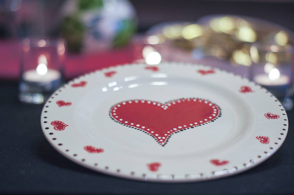 Можно также нанести рисунок красками на тарелку к 14 февраля