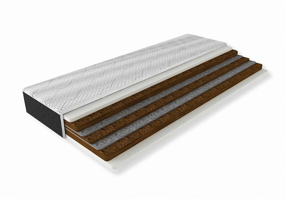 Самыми жесткими признаны модели из кокосового волокна. Они подходят спортсменам, людям с большим весом или проблемами со спиной. Например, Antic Cronos от фабрики Strong выдерживает нагрузку до 140 кг на спальное место. Высота моноблока из кокосового волокна составляет 15 см, благодаря чему он отлично сохраняет форму.