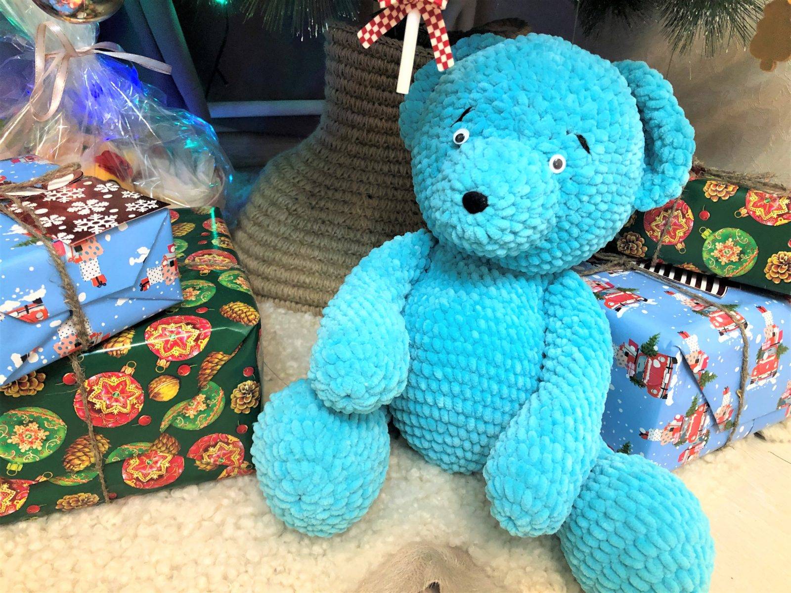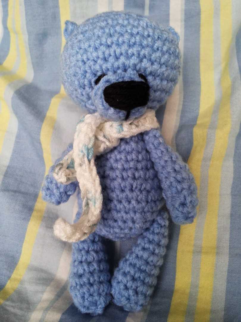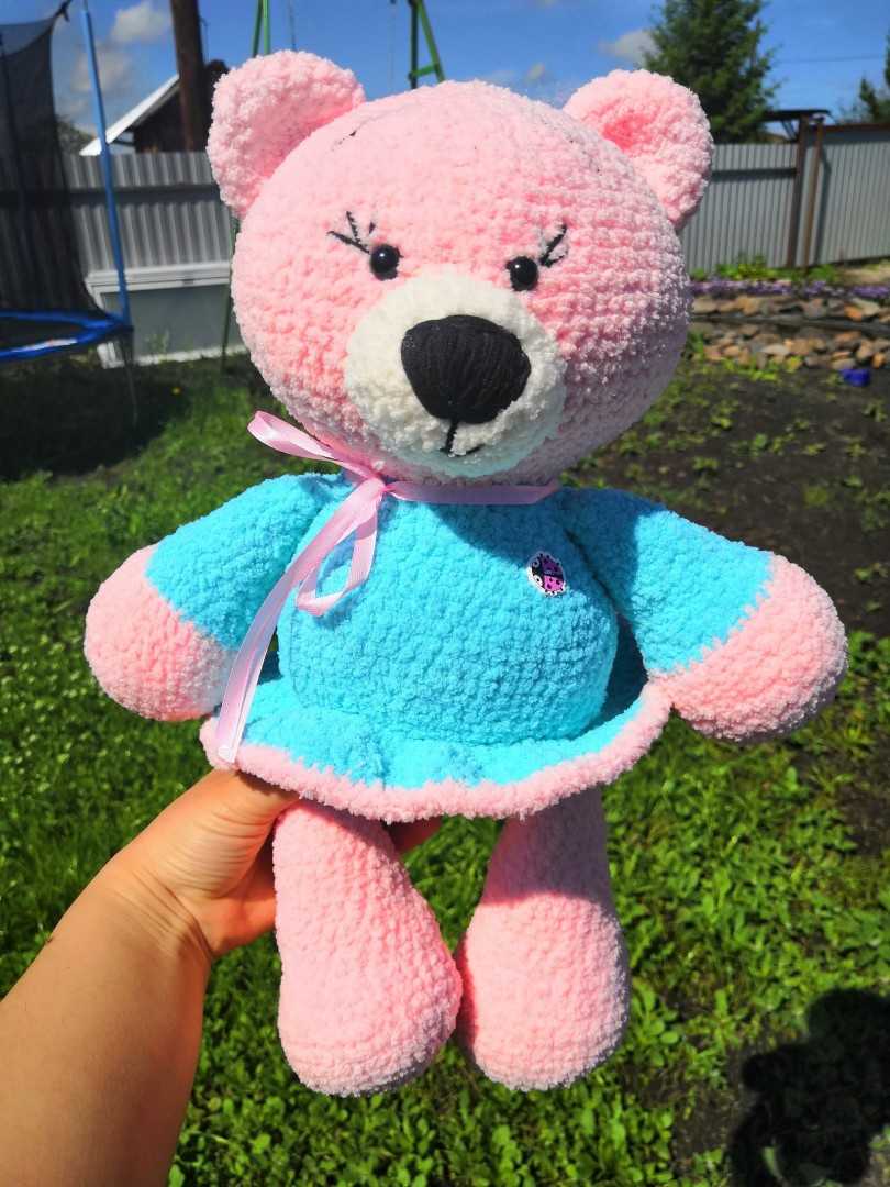 Вот мы и связали мишку крючком. Осталось только придумать для него одежку.