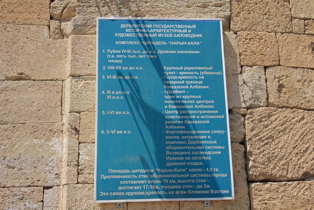 Нарын-Кала — это часть огромной фортификационной системы, куда кроме цитадели входили городские стены, морские укрепления и 40-километровая Горная стена (Даг-бары), направленная в сторону Кавказского хребта. Оборонительные сооружения были возведены в самом уязвимом месте — узком трехкилометровом участке равнины между горами и морем, откуда начиналось любое нападение кочевых племен с севера.
