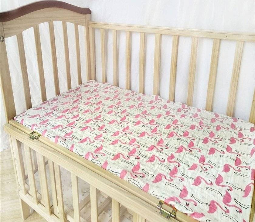 Помимо одеяла, муслин может стать хорошей заменой простынкам. Благодаря своей легкости и мягкости новорожденный малыш будет чувствовать себя на них хорошо.