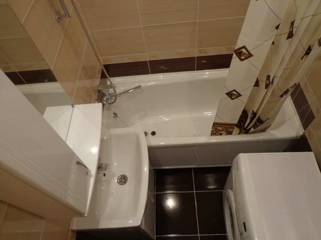 Очень скромные размеры ванной комнаты, совмещенной с туалетом, характерны для квартир-студий в новых домах. Их размер может не превышать 20 м2, понятно, что места для ванной тут крайне мало. В таком случае можно попытаться вписать сантехнику не вдоль стены, как это принято, а в углах санузла. Это освободит проход по центру.