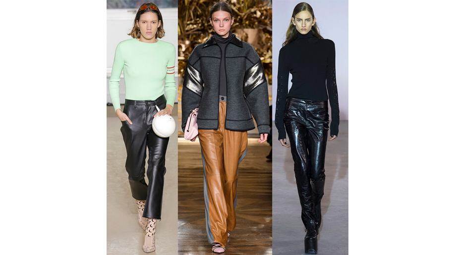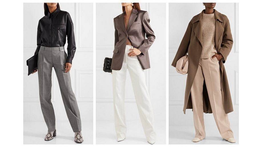 Среди трендовых моделей следует отметить клеш, палаццо и с повышенной талией. Из материалов актуальными будут шерсть, вельвет и бархат различных оттенков.