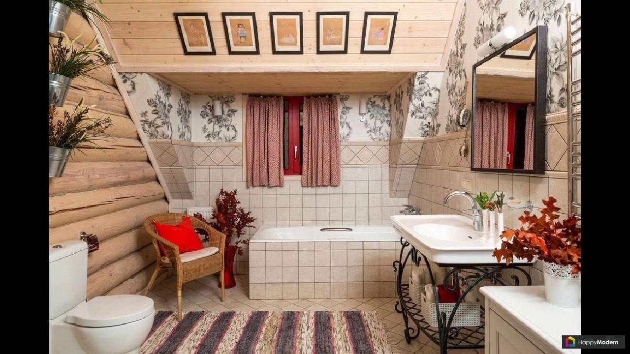 Навесные открытые полки и шкафчики с характерной отделкой создадут нужную атмосферу. Плетеные корзины для белья и косметических принадлежностей дополнят узнаваемый образ.