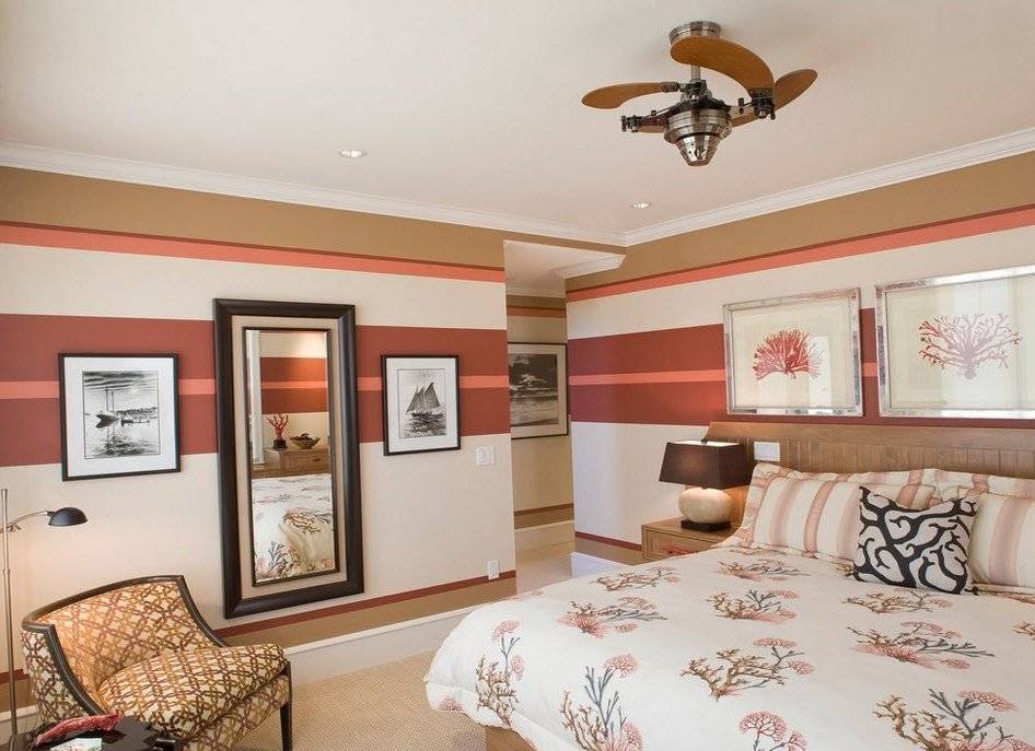 Прекрасным решением для комнаты с низким потолком будет создание вертикальных полос разных цветов. Полосы могут быть любой ширины: как одинаковой, так и разной.
