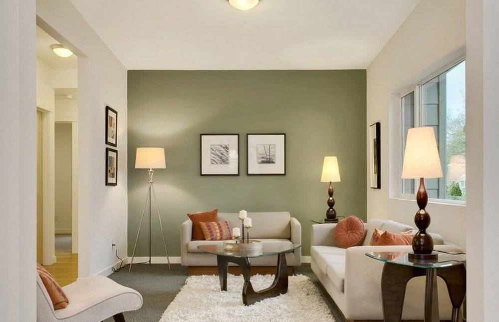 «Акцент на стене», когда одна поверхность, обычно напротив входа в комнату, красится цветом, отличным от цвета остальных стен. Чаще используется в дизайне гостиных и спален.