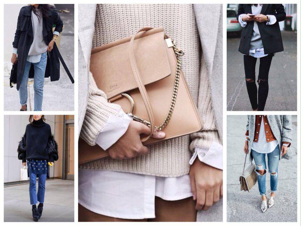 Топы-сорочки, которые выглядывают из-под пуловеров и кардиганов — еще один классический тонкий слой