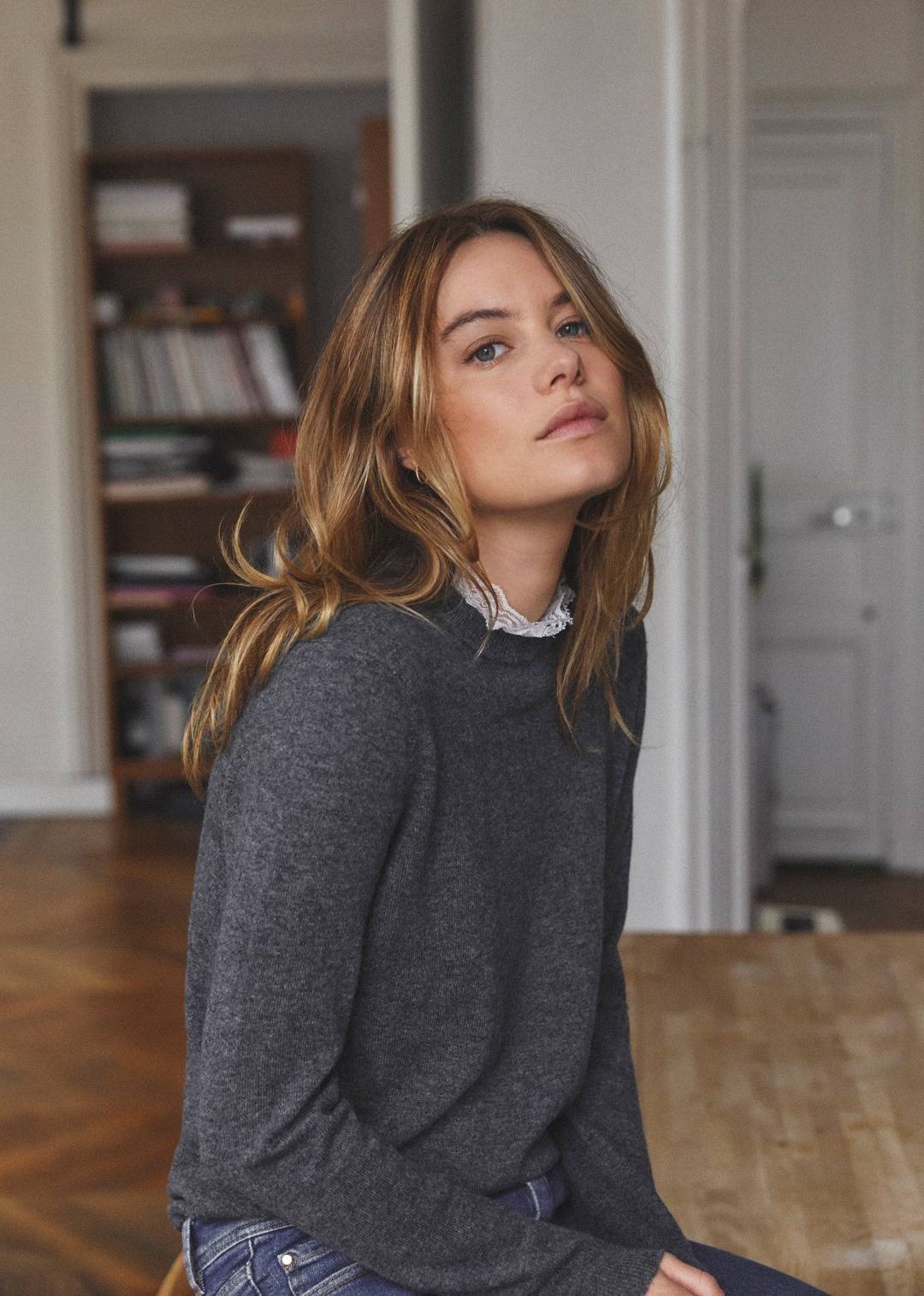 Блузка с кружевным воротником-стойкой и тонкий кашемировый свитер — два отличных базовых слоя