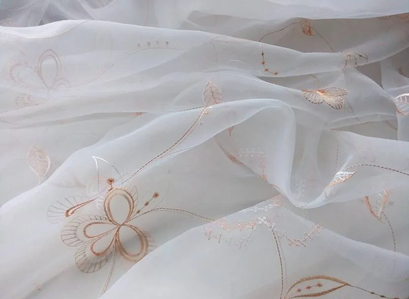 Белая матовая полупрозрачная органза с вышивкой для изготовления штор Источник livemaster.ru