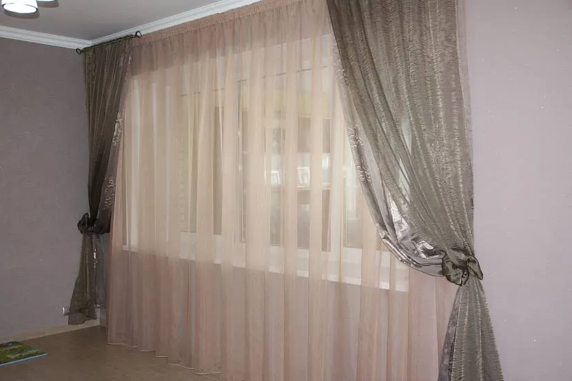 Кремовая однотонная органза дополнена серыми портьерами Источник b-sector.ru
