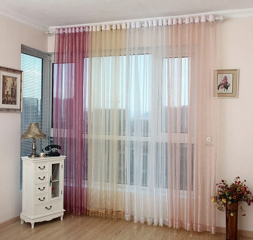 - Легкую, прозрачную ткань выбирают для пошива штор и гардин. В дом легко будет проникать солнечный свет, чистый воздух. Сдержанность или эффектная фривольность гардин создадут ощущение уюта и счастья.