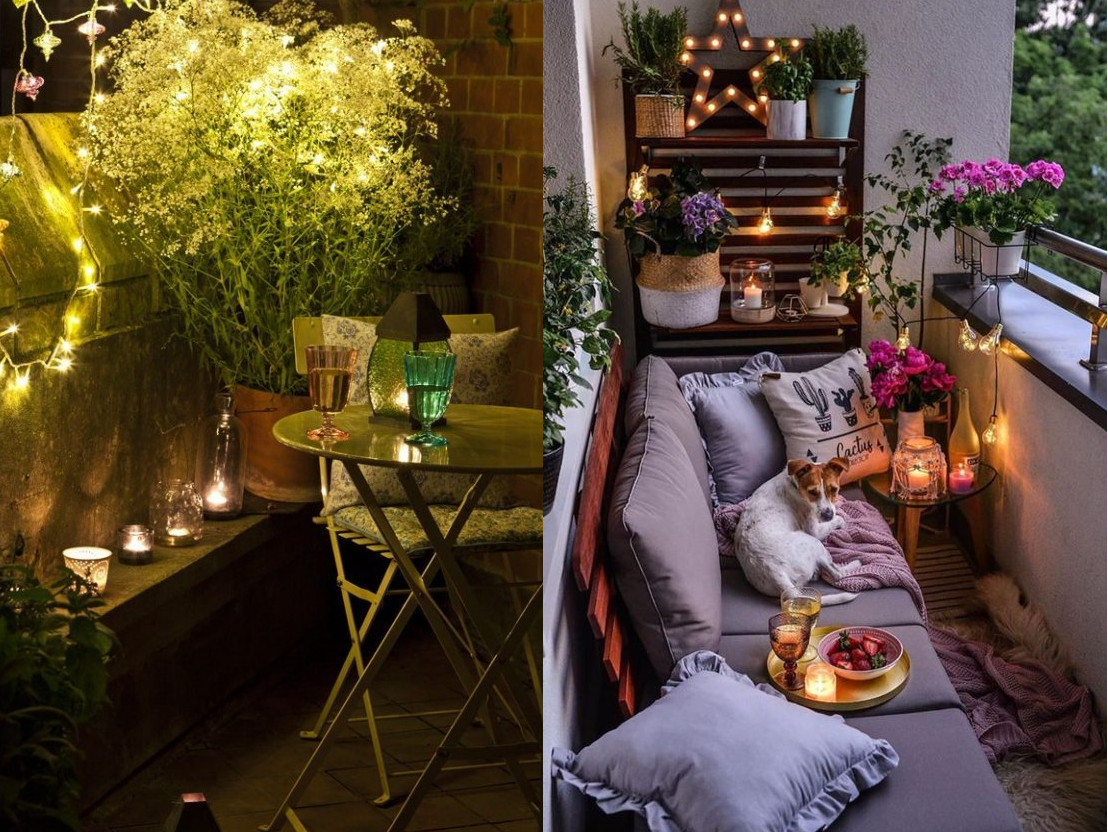 Лоджию можно превратить в спальню и/или в чил-аут зону, добавьте откидной столик и компактные садовые стулья, и у вас появится миниатюрная версия уличного кафе, чтобы уютно устроиться с чашкой кофе утром или с бокалом вина вечером. Добавьте дополнительное атмосферное освещение и получите новый спектр эмоций от жилплощади.