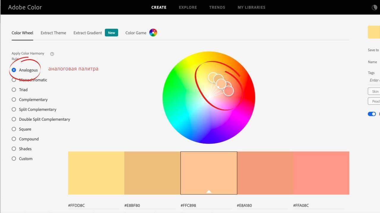 Это сочетания оттенков которые находятся в в соседних сегментах колеса спектра, и при этом обладают той же степенью яркости, что ваш базовый цвет