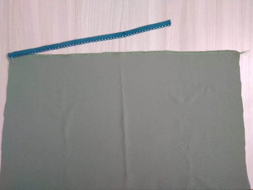 2. Нарезаю кружево на полоски и прикладываю к верхнему срезу полочки таким образом, чтобы оно красиво легло с учетом рисунка.