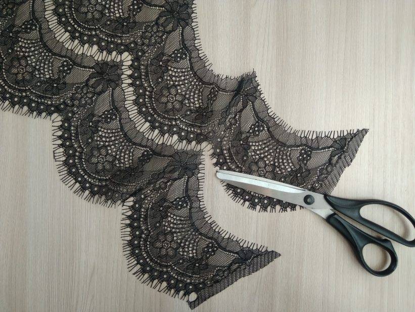 15. Отрезаю кружево так, чтобы хватило на нижний край каждой штанины.