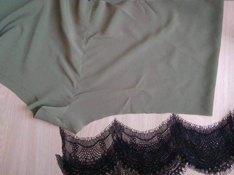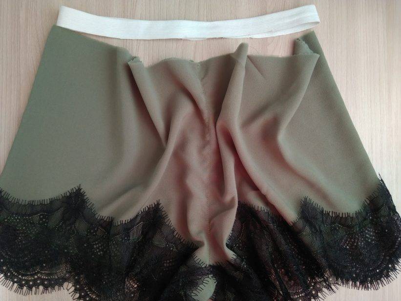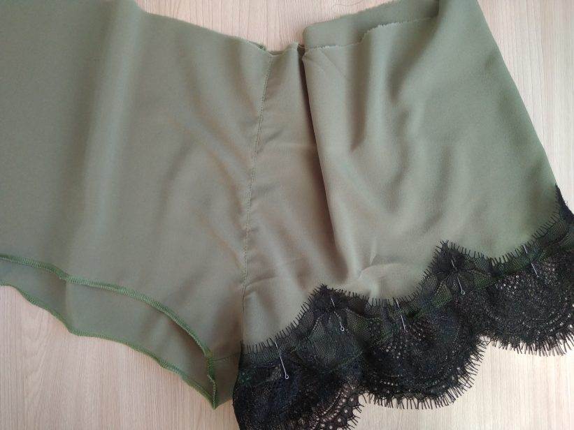 18. Пришиваю кружево к шортам на швейной машинке прямой стачивающей строчкой.