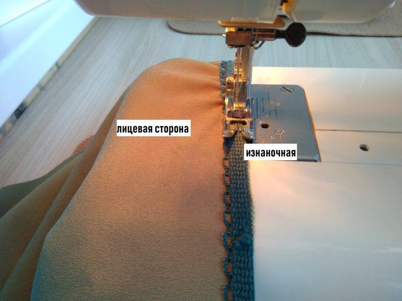 Один край пришиваем ко шву, подогнув края, как показано на фото ниже.