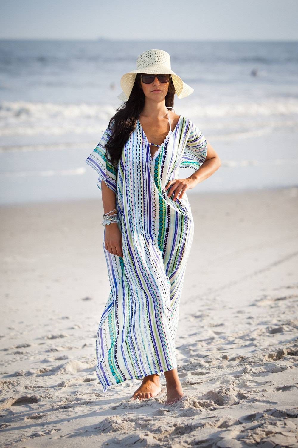 Пляжный сарафан не так давно стал популярен — он не только женственно и красиво выглядит, в нем также комфортно покидать место купания для завтрака или прогулки, без необходимости переодеваться или составлять наряд слишком долго. Такого типа одежда имеет еще ряд неоспоримых преимуществ: она позволяет не обгореть на палящем солнце, если вам хочется прогуляться у берега или посидеть у бассейна.