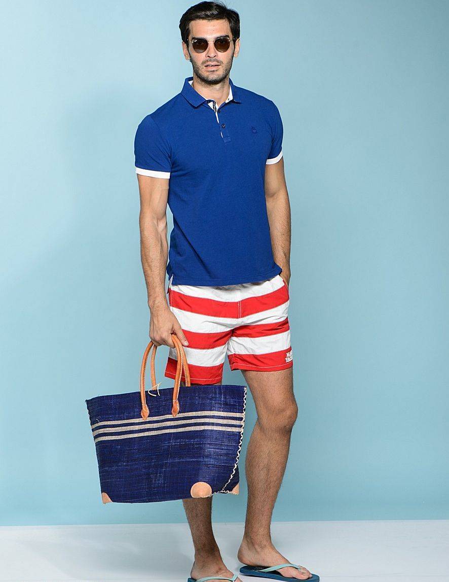 - верхняя часть — дизайнеры придумали огромное количество вариантов для сильного пола. Здесь можно найти рубашки в полоску, майки без рукавов, футболки, поло. Главный критерий выбора – удобство и соответствие остальному ансамблю образа;
