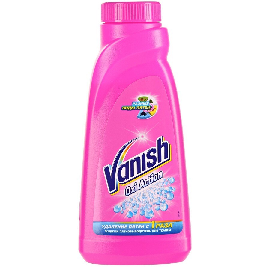 Vanish Oxi Action – универсальный пятновыводитель, хорошо справляющийся со всеми видами загрязнений, в том числе и с патогенной микрофлорой. В состав продукта не входят оптические осветлители, поэтому им можно стирать любые ткани, светлые и цветные. Единственное исключение – шерстяные вещи и изделия из шелка.