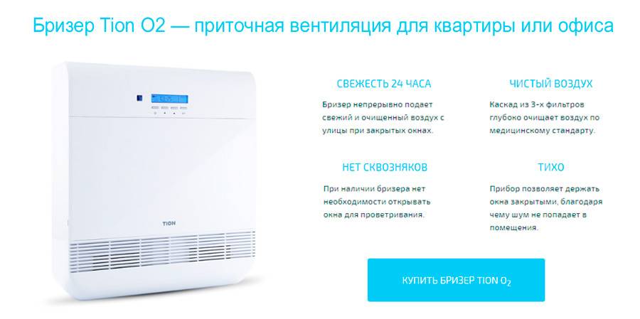 Отличным вариантом решения проблемы в помещении будет Бризер Tion O2, который разработан опытными специалистами, обладает массой достоинств, а главное — делает воздух в помещении действительно чистым:
