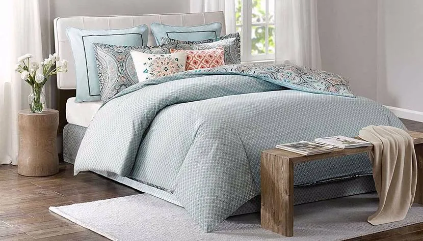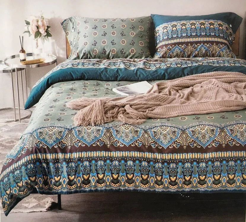 Например, однотонную простыню отлично дополнит двусторонний пододеяльник с рисунком на одной стороне.