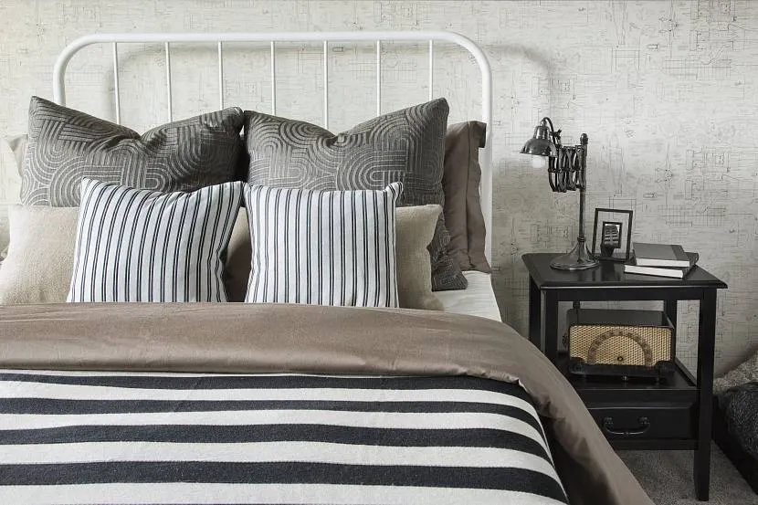 Многослойность будет выглядеть гораздо интереснее, если использовать двухстороннее постельное белье. Например, в комплект входит светлая однотонная простыня, наволочки в темных тонах, пододеяльник с контрастной изнанкой (с узором или принтом).