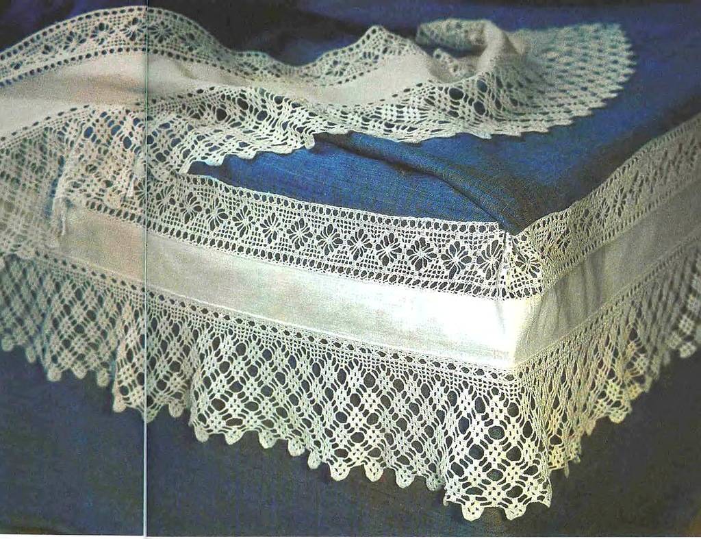 Можно украсить подзор из ткани оборками и кружевомСхема вязания подзораСхема каймы для подзора