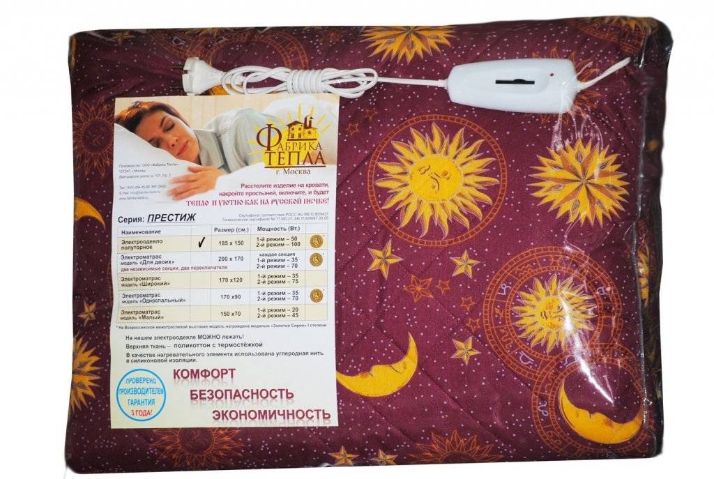 Безопасность — поскольку это электроодеяло и работает оно соответственно от электроэнергии, переводя её в тепло то, выбирая электроодеяло необходимо, как следует убедиться в его полнейшей безопасности. К изделию в обязательном порядке должен предоставляться сертификат, инструкция по эксплуатации и гарантийный талон.