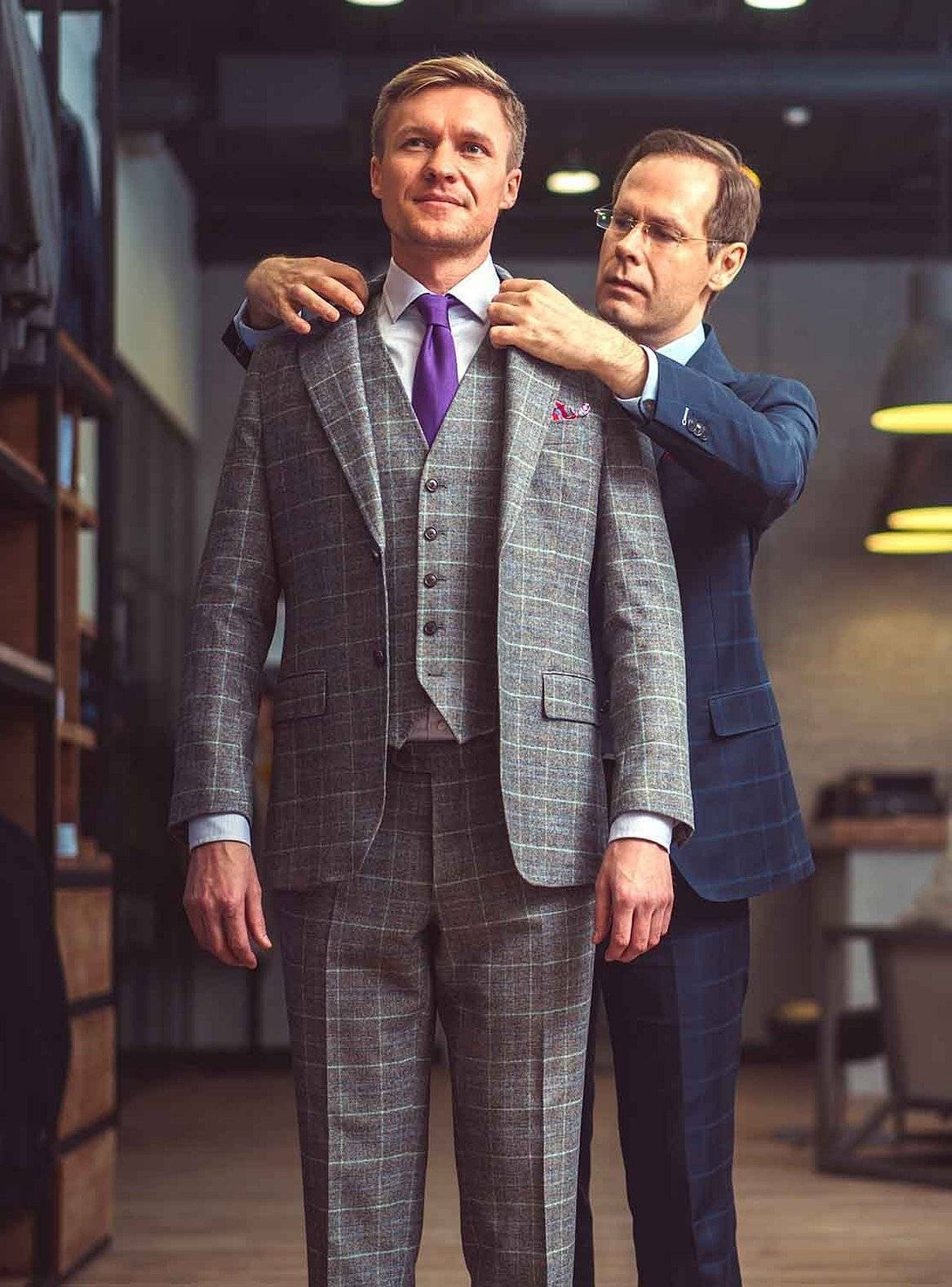 Чтобы создать качественный мужской костюм, специалисты и швеи снимают порядка 36 мерок и делают фото клиента в нескольких проекциях. Некоторые портные подгоняют мерки под заказчика, но лучше все делать индивидуально. Чтобы облегчить сотрудничество некоторые эксперты сохраняют данные и мерки и используют их при следующем заказе на пошив одежды.