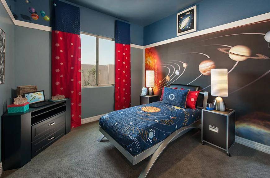 Цветовая гамма традиционно отталкивается от сине-голубой, но яркие картинки и впечатляющие образы и даже 3D-эффекты вносят потрясающую динамику и свежий взгляд на то, как может выглядеть кровать современного подростка.