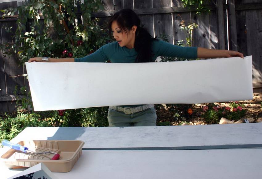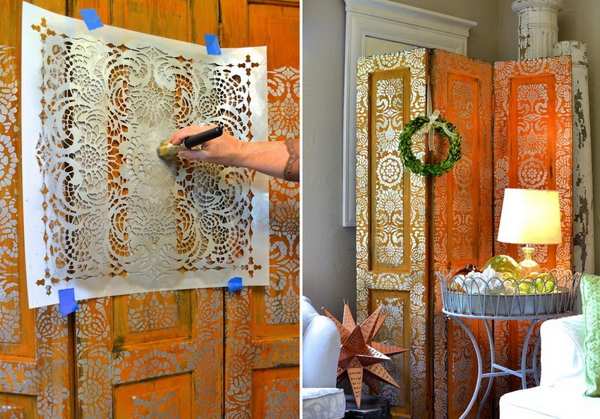 Декорирование перегородки с помощью трафарета и белой краски