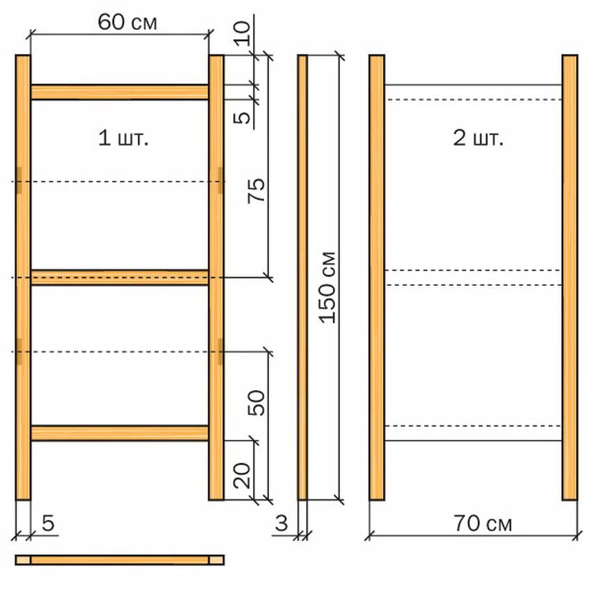 - брус для каркаса сечением 4 х 4 см – 6 шт. длиной 2 м и 6 шт. коротких элементов (0,5 – 1 м);