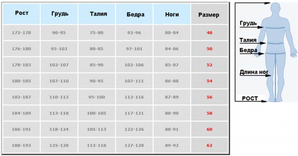 | Российский размер | Обхват груди (см) | Рост (см) | Американский размер | Европейский размер | Итальянский размер | Международный размер |