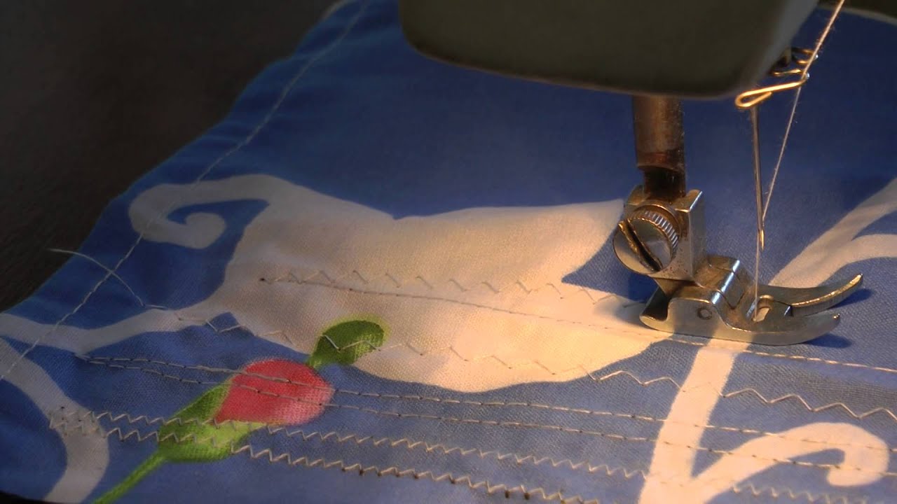 При этом стежки должны быть одинаковой величины и сшиваемые ткани должны двигаться прямо от работающего.