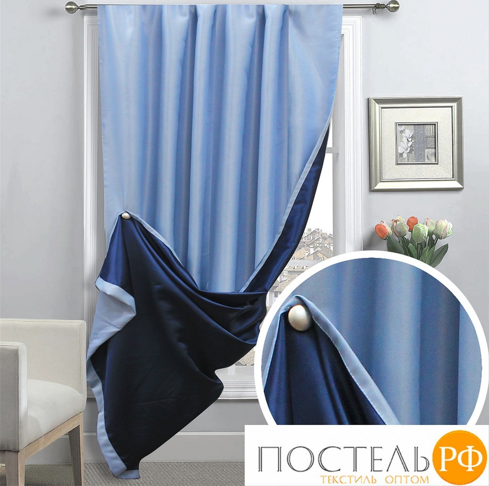 - Широкий ассортимент тканей, включая материалы со светоотражающим, светонепроницаемым или светорассеивающим эффектом.
