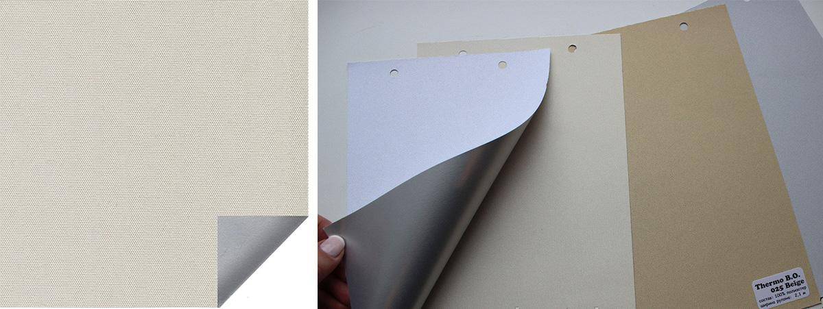 Для изготовления полотна применяется трехслойная нетканая материя, способная приглушать свет. Внешний слой производится из белой ткани. За счет светлого оттенка отражаются и не пропускаются в помещение солнечные лучи.