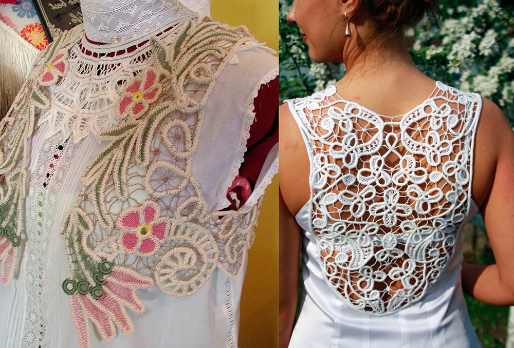 В современной моде румынское кружево используют для создания многих предметов одежды, а также отдельных элементов, таких как воротники, пояса, сумочки, жакеты, жилеты, болеро, накидки, туники и, конечно,