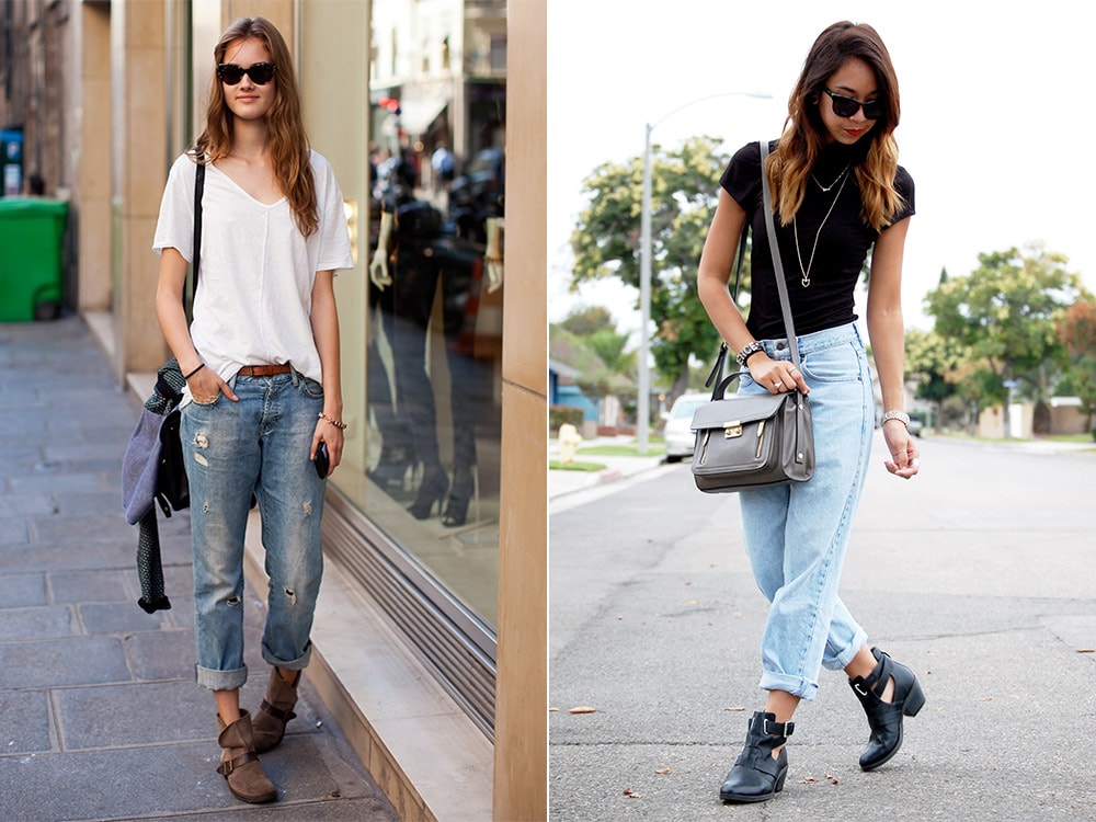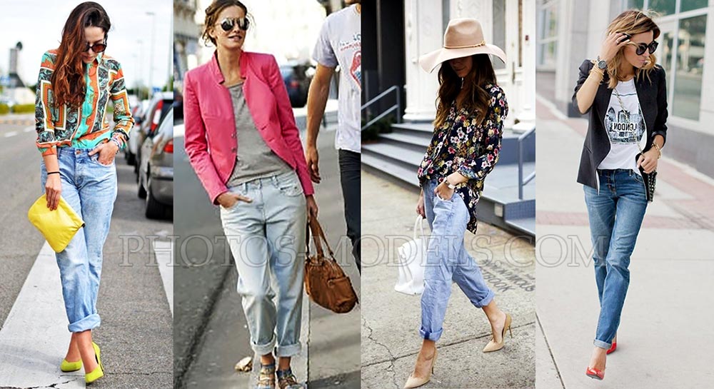Сами по себе джинсы бойфренды должны иметь заниженную посадку на талии и мешковатый силуэт, желательно наличие сильных потертостей и рваных дырок. Во время носки рекомендуется подворачивать штанины на уровне щиколоток, это подчеркнет утонченность фигуры и добавит женственности.